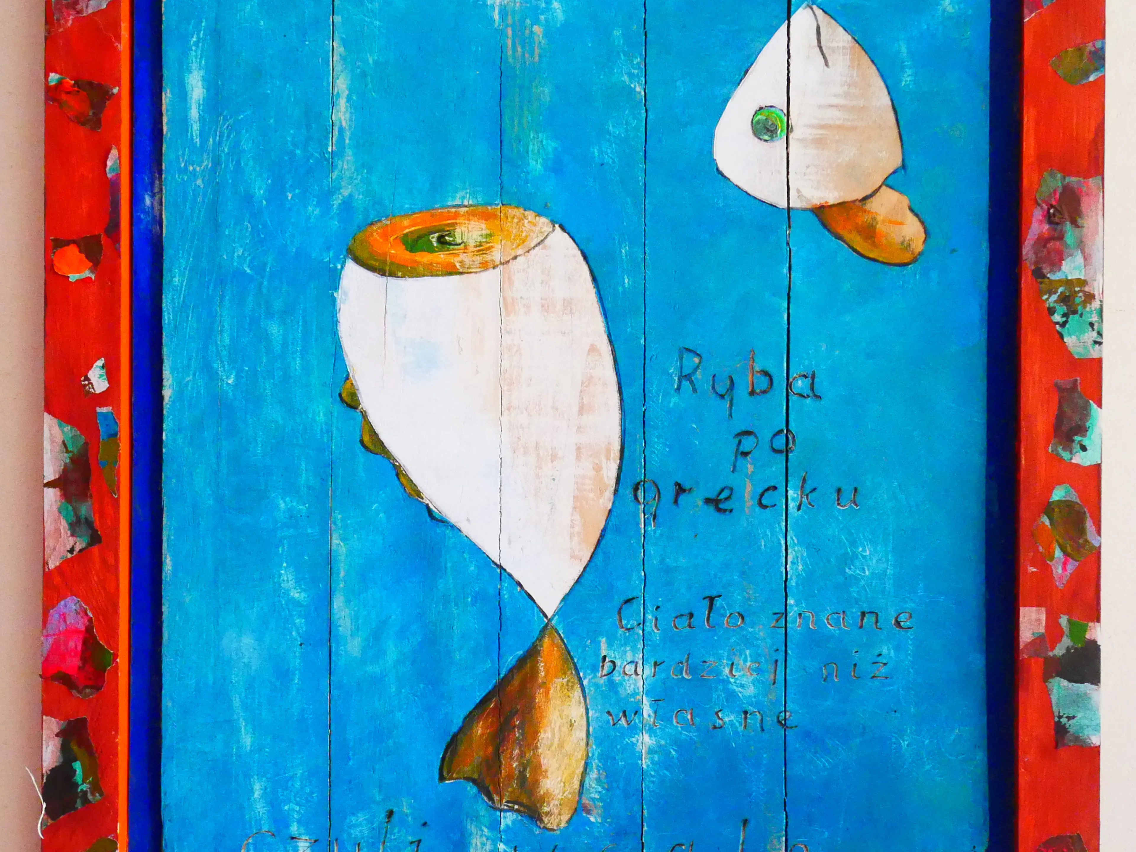Kazanie do ryb Obrazek na deskach akryl, pirografia itp. Rozmiar: 92 x 84 cm