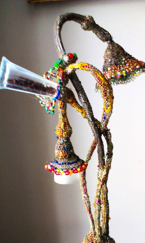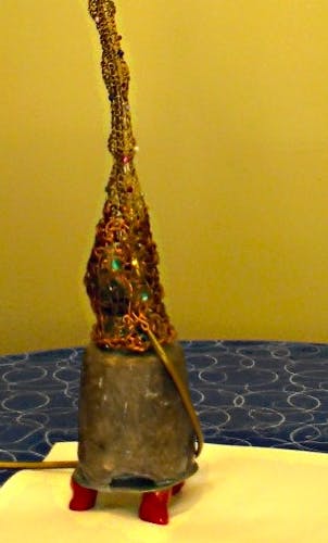 Lampa z drutu + kryształki na kryształowej podstawie.