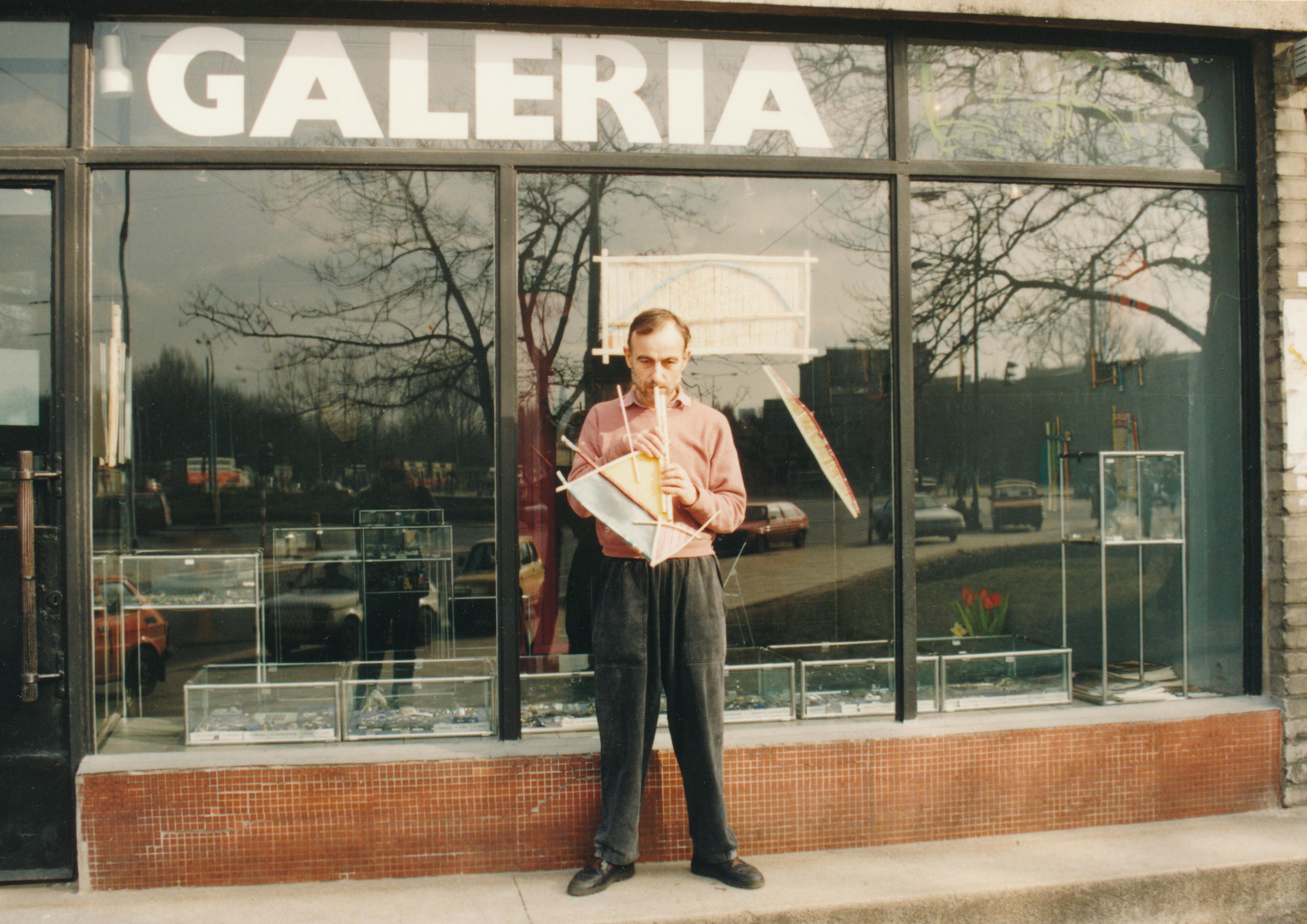 Obiekt pastoralny ,fragment zachmurzonego nieba namalowany farbami olejnymi na płótnie w otoczeniu elementów wystruganych z gałązek leszczynowych. Podczas wernisażu w galerii rzeźby w Warszawie wykonałem na nim "Pieśń Fauna" z towarzyszeniem chóru Wysoka Izba . — Wystawa w galerii Milano